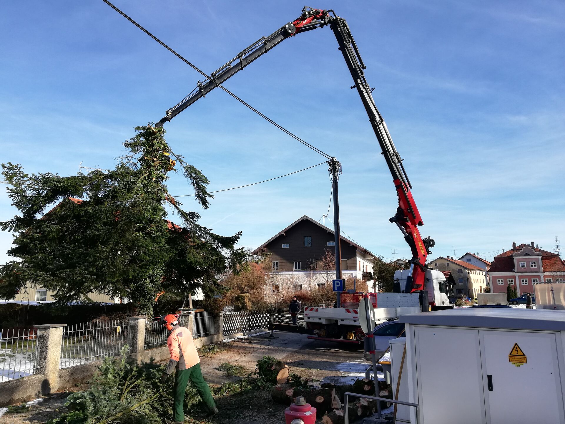 • Baumfällung mit Ladekran & Spezialaufsatz